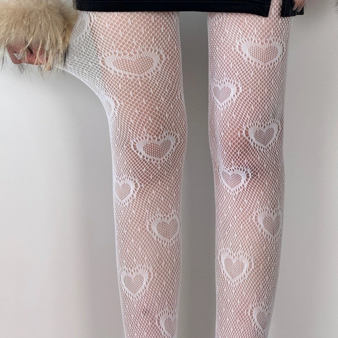 Soft, cozy stockings designed with delicate heart patterns for a sweet, feminine touch. The warm, stretchy fabric feels gentle on the skin while creating a cute and stylish look perfect for winter outfits, cozy days, or adding charm to any ensemble.